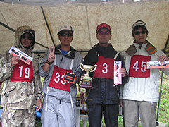 大会75名参加。決勝進出30名) |  | 朝からしとしと雨の中からスタート。予選は前日放流の効果で前半スタート組は予選中41本を筆頭に軒並み好釣果。ボーダーラインが25本以上という組もあり、熾烈な争いとなった。決勝は雨が強くなり、やや肌寒い中行われた。誰もが魚が下がるお思っていた中、表層を巧みに攻めた清水栄次さんが優勝をものにした。 |