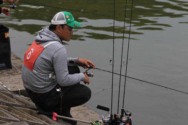 ポンドの状況は春の東山湖特有のマッディ。シャロー側にはいくらかアオコが発生していたものの、大会への影響はほとんどなかった。シーズン末期で魚が溜まった状態。大会前週の日曜日はかなりの釣果が上がっていたものの、月曜〜水曜の雨で状況が落ちたのか、この日はイージーな釣りにはならかった。それでも中層から上のクランキングで反応はまずまず良く、上位の選手はカラーローテーションで数を伸ばしていた。