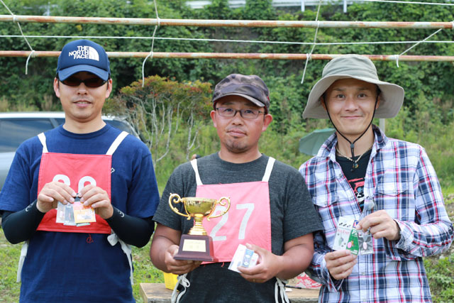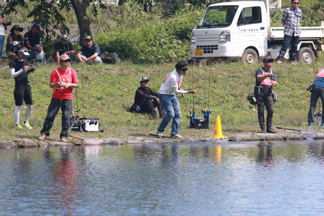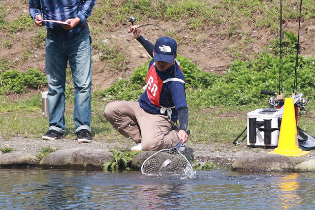 朝の気温は18℃。天候は曇り。秋らしく涼しい朝、大会はスタートした。恒例の当日放流で朝イチは好反応。恒例のCエリアを中心に釣果は伸びた。第2、3ローテは一旦は活性が落ち着くものの、第4ローテ前に再放流が入ると再びBCエリアを中心に釣果が伸びた。その後水温が上がってくると魚の活性も上がり、前半に比べて釣果が伸びた。