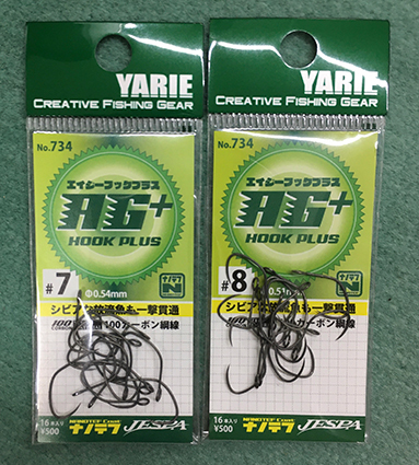 この秋から発売されたヤリエAGフック+(エイジーフックプラス)#7#8。そろそろ全国のショップでも手に取る機会が増えてきたのではないでしょうか?従来の「放流セカンド」「甘噛み」といったちょっとシブり出したシチュエーションに適したフックというで開発されたAGフック。そのコンセプトはそのままにAG+は針の線径を若干肉厚にしたモデルです。