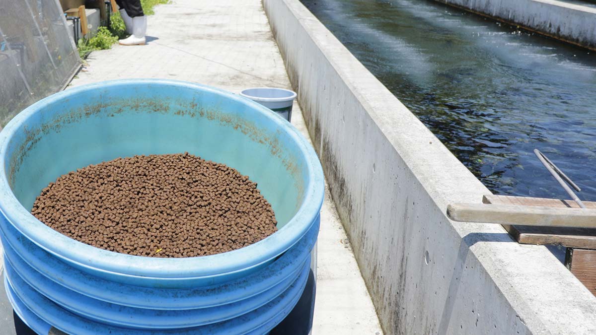 ニジマスの成長には高タンパクな餌が必要です。自然環境や国際動向に左右されずらい持続可能な代替餌の開発が求められています。新たな調達方法を複数つくることでニジマスの価格安定につながる事が見込めます。
