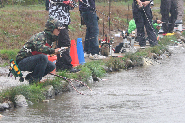 決勝戦は12人が進出。事務所側岸に決勝エリアを設けて開始。予選不使用エリアだった事もあり、放流こそなかったが開始早々は予選スタート並みの釣れ具合。 その後は活性が落ち着くも予選同様、上か下かという展開で後半もジワジワと数が伸びる時間帯に。重苦しいシーソーゲームの中、[1]福田選手、[9]小林選手、[29]大島選手の3人が8尾と並びプレーオフにもつれこむ。