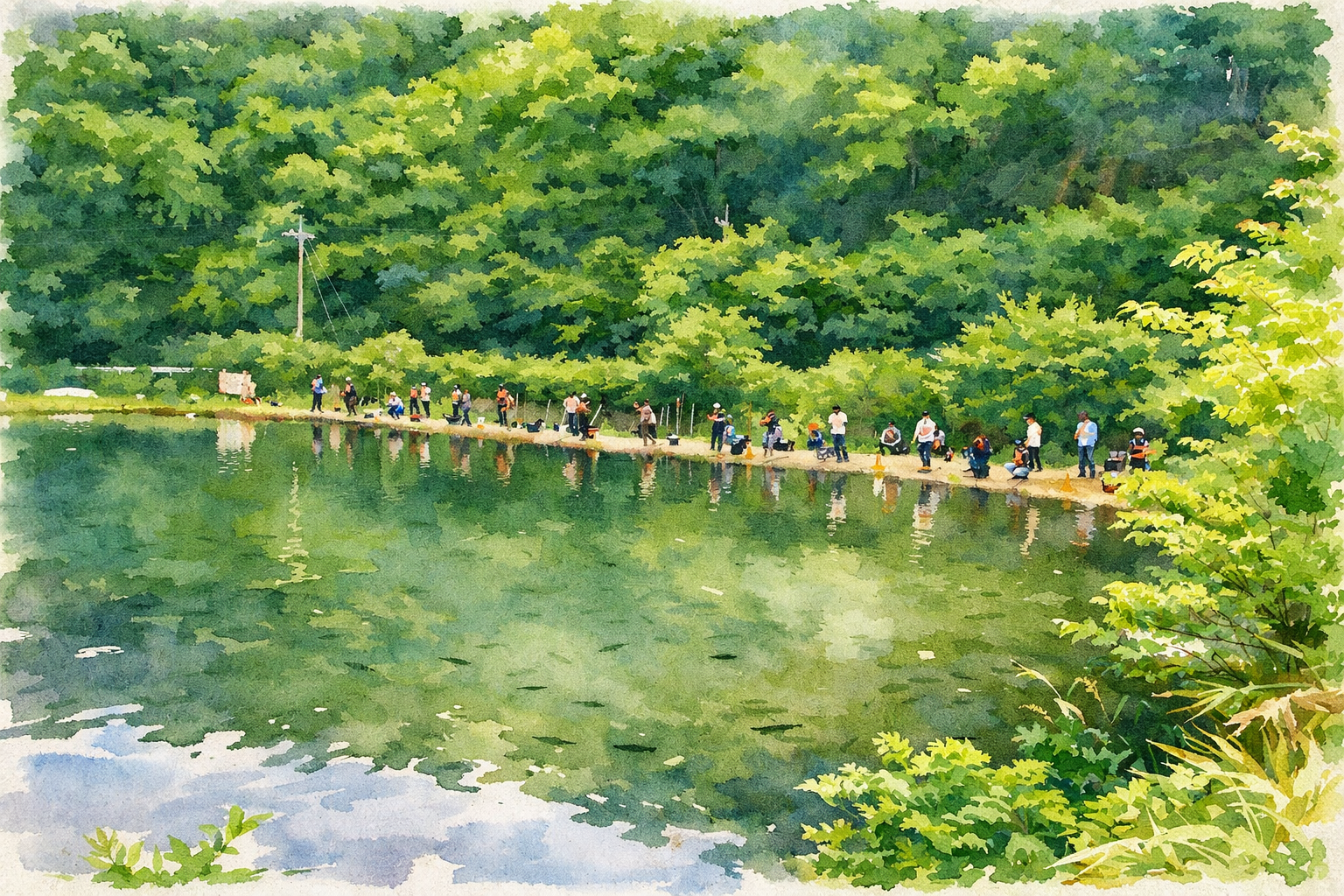 2号池、3号池を使用する事が多い。片側からの釣りとなるので放流魚は沖に寄る事もある。放流はすぐ効く事が多い。