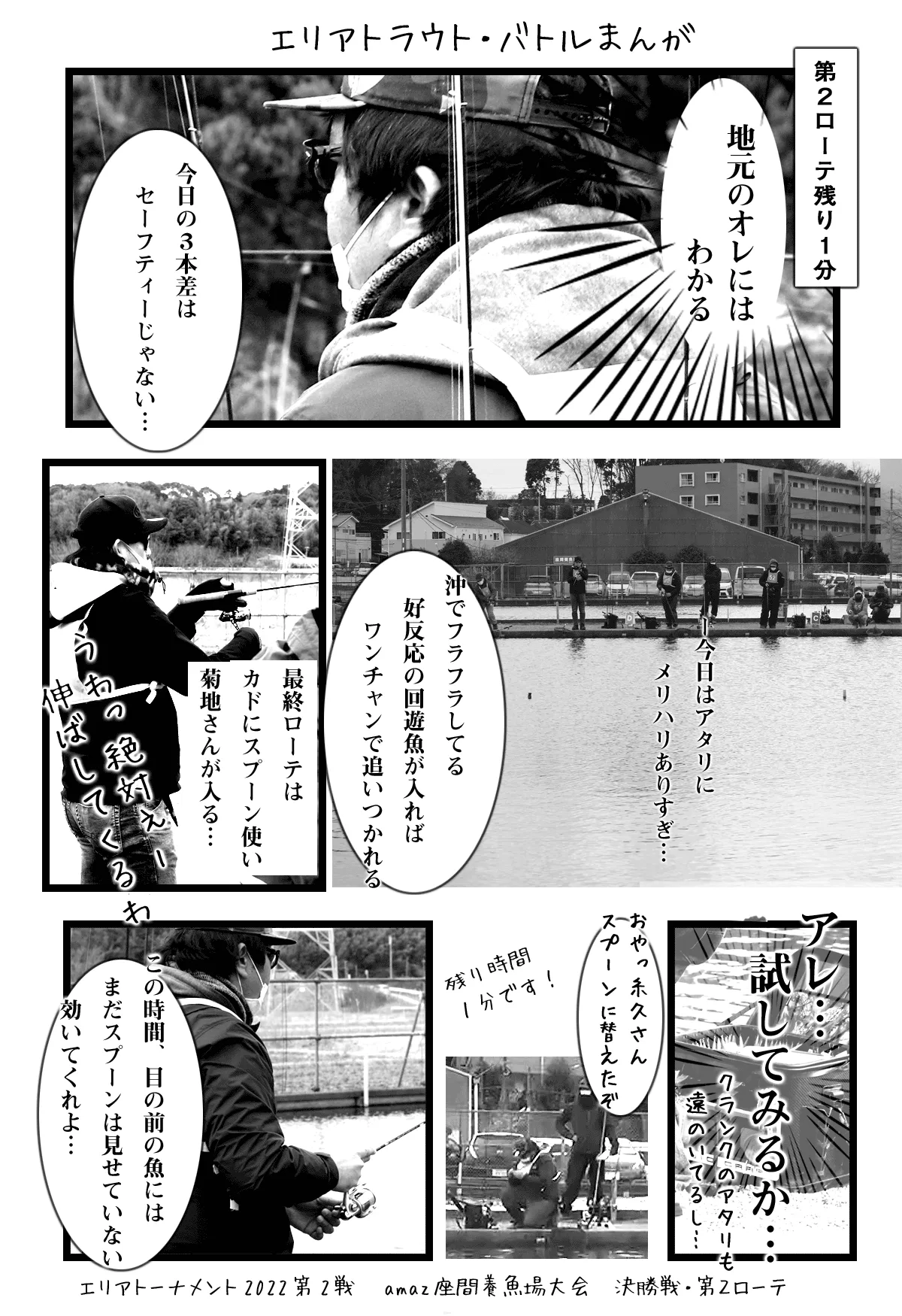 糸久選手が第2ローテ終盤に取ったスプーンの1尾が終盤伸びた菊地選手に転がっていたら結果が変わっていたかもしれないという絶妙なひと挿しが勝利への布石となった。