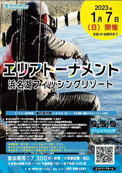 エリアトーナメント2024第1戦浜名湖フィッシングリゾート大会を1月7日(日)に開催いたします。インターネットエントリーは12月18日(月)20:00より開始します。