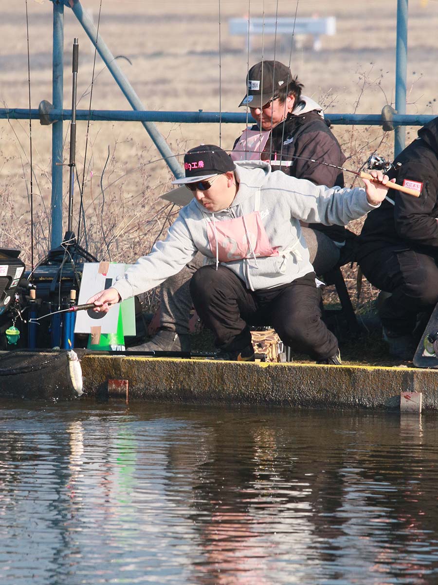 エリアトーナメント2026第4戦座間養魚場大会決勝は小春日和の中行われました。優勝は齋藤剛以選手、2位は斉藤征泰選手、3位は花岡聖仁選手でした。