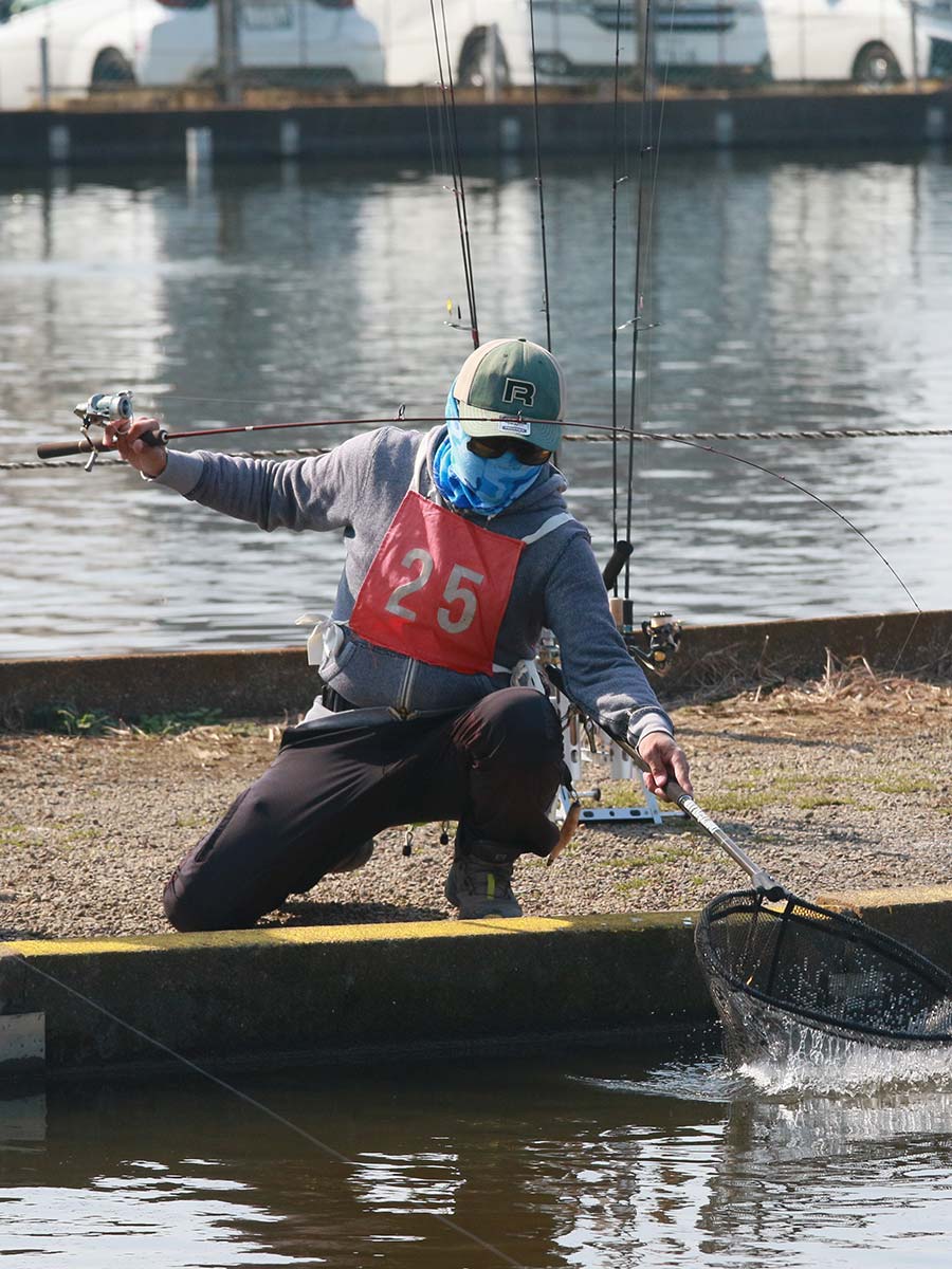 決勝戦第3ローテは釣り座移動後開始。3分で花岡選手が1本を釣りあげトップ争いに加わる。4分には斉藤征泰選手、齋藤剛以選手もそれぞれ1本ずつ追加し齋藤剛以選手が1本をリードする展開。その後は各選手ともヒットに持ち込めずタイムアップ。齋藤剛以選手が1本を守り切り、2022年トラウトポンドNOIKE大会以来の優勝を手にしました。