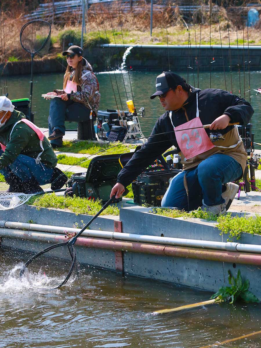決勝第3ローテは釣座移動の後に開始。この時間は奥に移動した山口選手、花岡選手が共に『ボトムサタン』で追加。また船串選手、遊佐選手ともマイクロスプーン巻き上げで1本を追加したところで時間終了。前半のリードをまもった永田選手が初優勝を手にした。