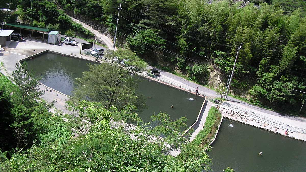 金剛山中にある管理釣り場。千早川ます釣り場が運営するルアーフライ専用池。フライフィッシングは川側。ルアーフィッシングは駐車場側。