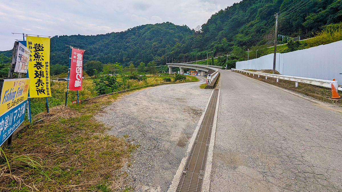 ③ルアーフライは釣池近くの駐車場。えさ釣りは受付から一段下がった所にある広い駐車場に停めると便利↓