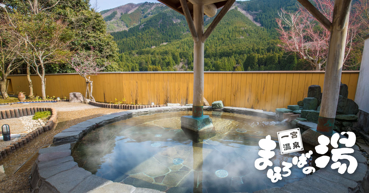 兵庫県宍粟市にある一宮温泉 まほろばの湯です。高峰の山並みなど豊かな自然を感じながら、天然温泉をお楽しみいただけます。天然温泉は食塩など多くのミネラル成分を含有するアルカリ性の食塩泉となっています。10時~21時営業。定休日は火曜日です。