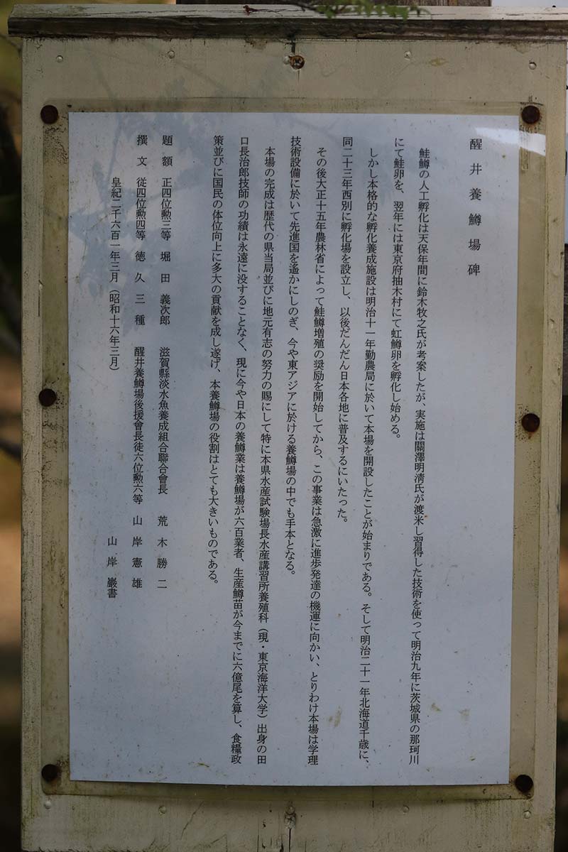 1916年に建立された石碑。醒井養鱒場ルアー池の近くに今でもひっそりと佇む。