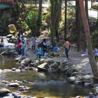 大分県日田市。『上津江フィッシングパーク』は自然の渓谷を生かした釣場です。大人からお子様まで安心して釣りをお楽しみいただける、お手軽で臨場感あふれる渓流釣りです。