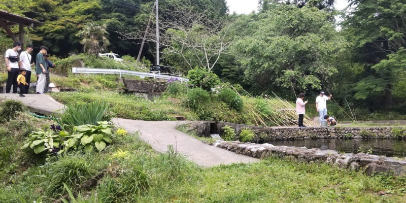 にじます山の中えさ釣り堀食事茨城常陸太田御岩神社付近子ども家族向け従量制常陸国トレイルコースハイキングコース入口