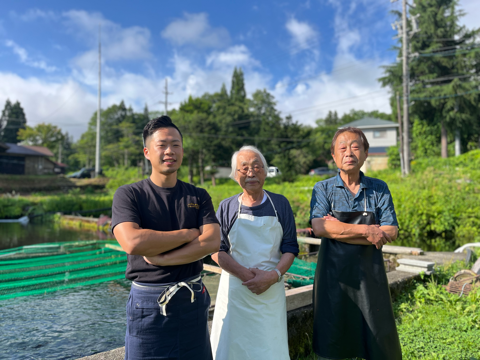 黒姫山伏流水100を使った養魚場。竹村養魚場。