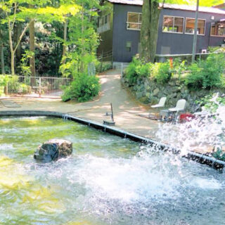 滋賀県高島市。『朽木こがわ渓流センター』は針畑川に沿った山裾に伏流水を引き込んだ広大な釣り池が2つ。エサ釣りは渓流区画タイプ。