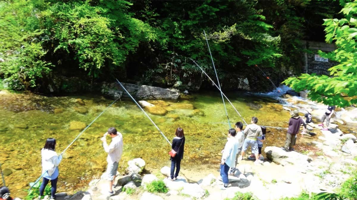 渓流釣り場は、中国地方で唯一、「自然の川をそのまま利用した管理釣り場」です。全長約0.5キロ区間に放流された魚を、時間内で自由に釣り歩いて頂くという珍しいスタイル。