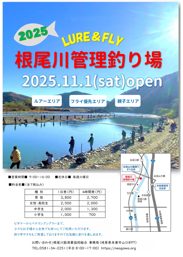 根尾川管理釣り場の近況は公式HPをご覧ください。Youtube動画一覧。
