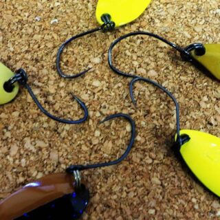 ルアーフィッシングはスプーンでの釣りが向いている。魚にとって視界が悪いのでゆっくり巻く事ができるスプーンが。カラーは朝夕の釣り同様に白黒、蛍光、グロウカラーなどが良い。プラグで釣る場合も同様ゆっくり見せながら釣るのが重要です。