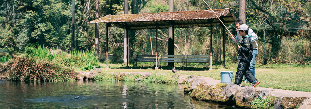 ニジマス釣り堀|釣り堀・ニジマスの養殖・塩焼き「皇子原温泉健康村」宮崎県高原町