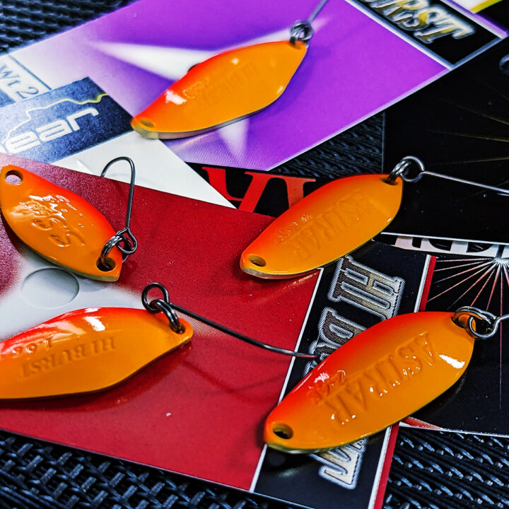 基本的には放流直後のウェイトが高いカラーです。バレンシアオレンジ/サイドレッドは従来のバレンシアオレンジに、横サイド20%程度「蛍光レッド」を配色し、強めなカラー2色同時に反応する魚を呼び込みます。状況に併せて、バレンシアオレンジと使いわけてください。