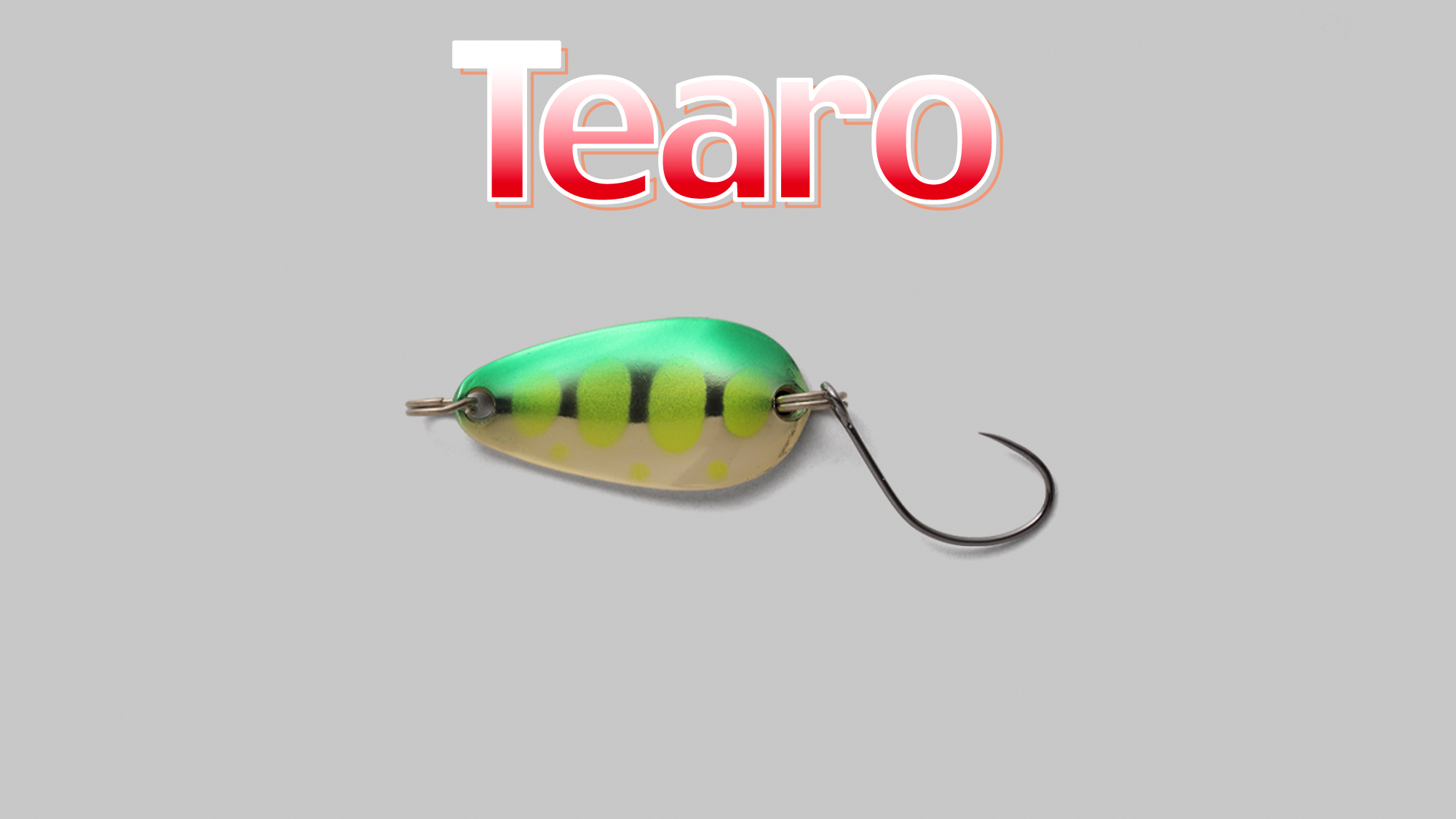 スローからファーストまで幅広いリトリーブキャパシティーを持ったベーシックスプーン”Tearo/ティアロ”。水掴みが良いティアドロップ型の形状と、微妙なノーズやカップのベンド角度により、大きなウォブリングでアピールします。