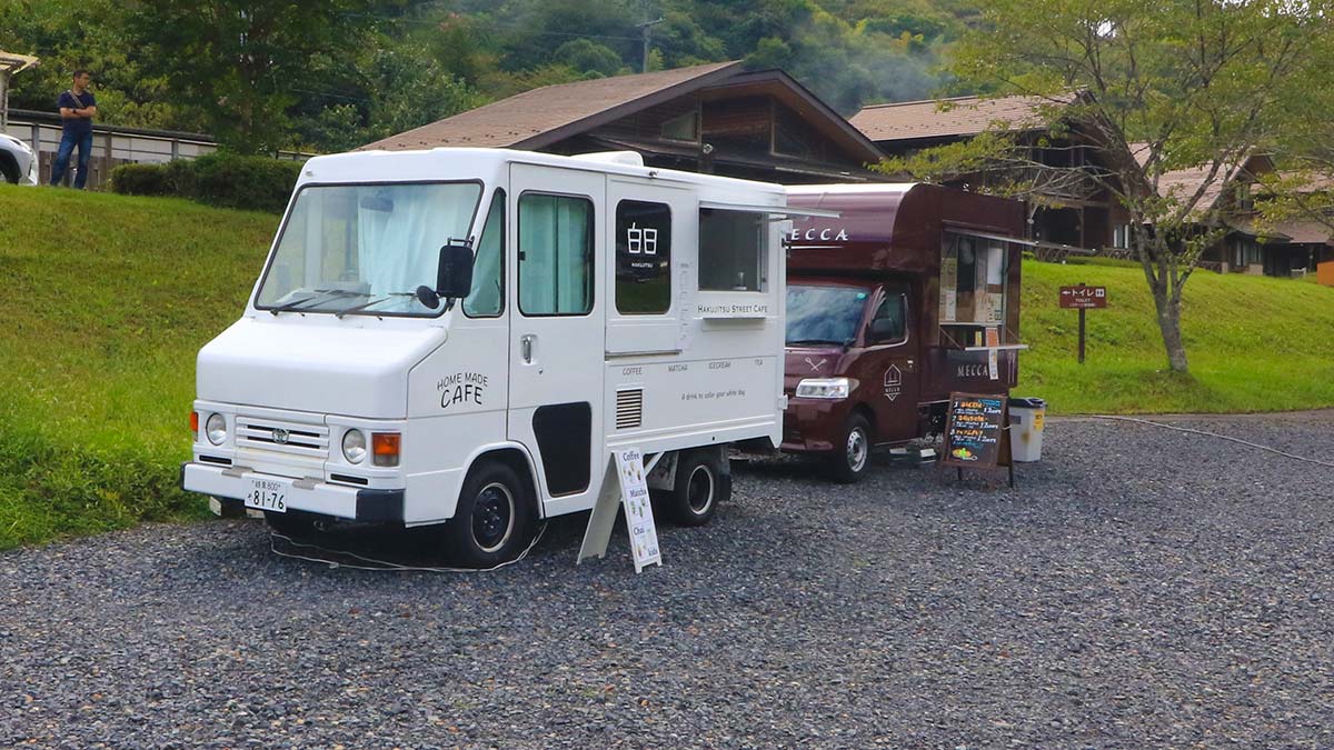 無料駐車場40台、BBQ場、キャンプサイト、足湯、