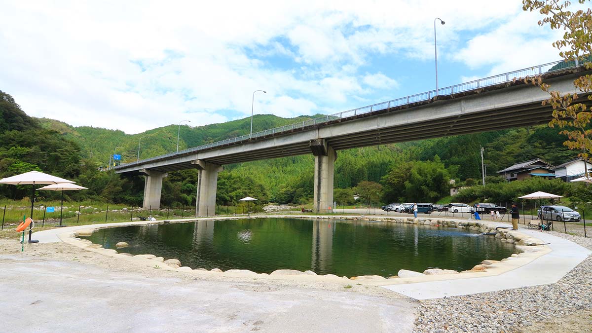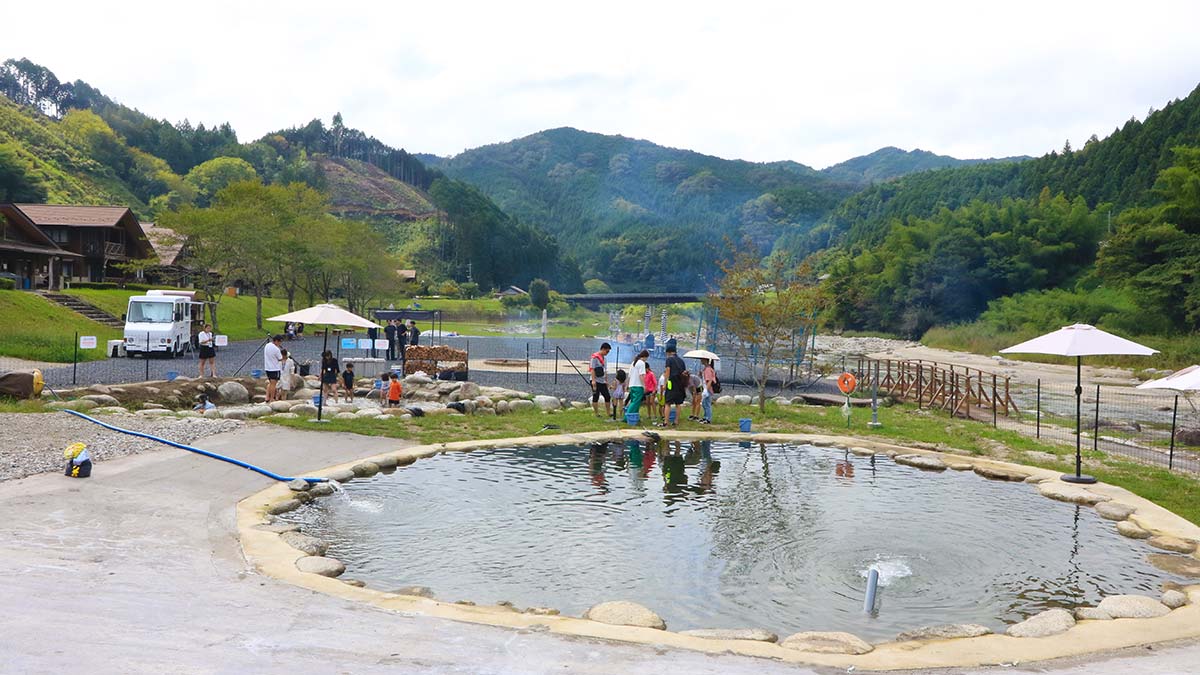 岐阜県恵那市『リバーパークかみやはぎ』はルアーフィッシング、ニジマスえさ釣り、つかみどりが出来る施設です。ほかコテージの宿泊なども行っています。