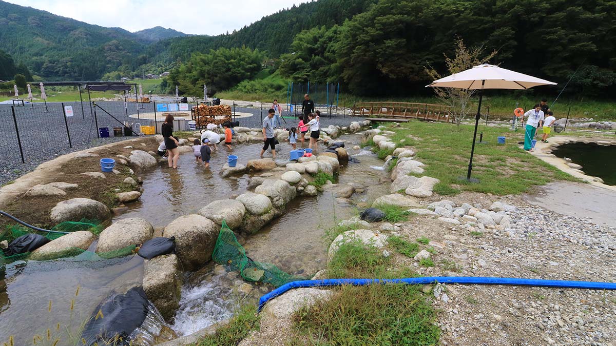 「魚のつかみどり」体験はビーチサンダル、ゴム草履等を用意しておくと良いでしょう。