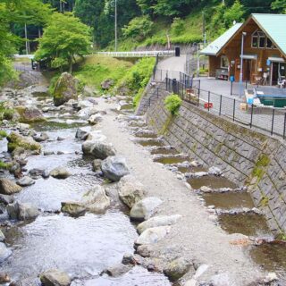 無料駐車場・休憩所・自動販売機・野外バーべーキュー・簡易水洗トイレ
