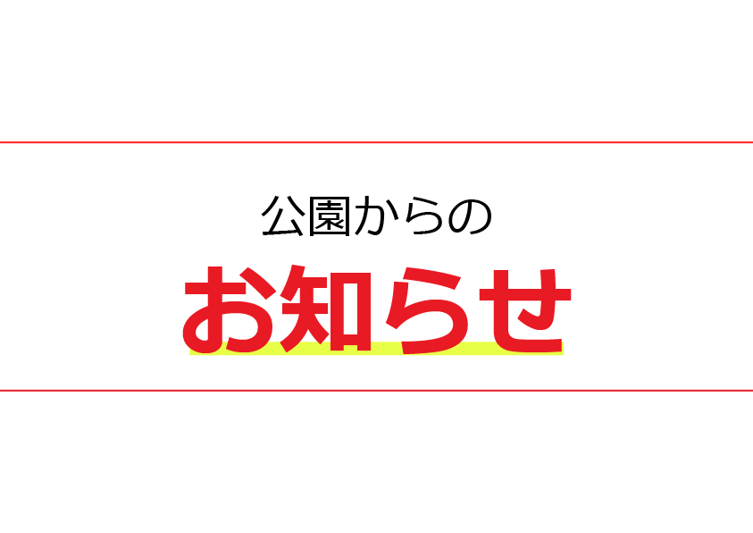 ゲレンデ状況に関する重要なお知らせNotice of suspension of tube slope and ski slope use積雪不足に伴い、スキーゲレンデやそりゲレンデ(チューブそり)などの一部施設が現在未開放です。 ご来園前に公園HP「ゲレンデ状況(毎日更新)」を...