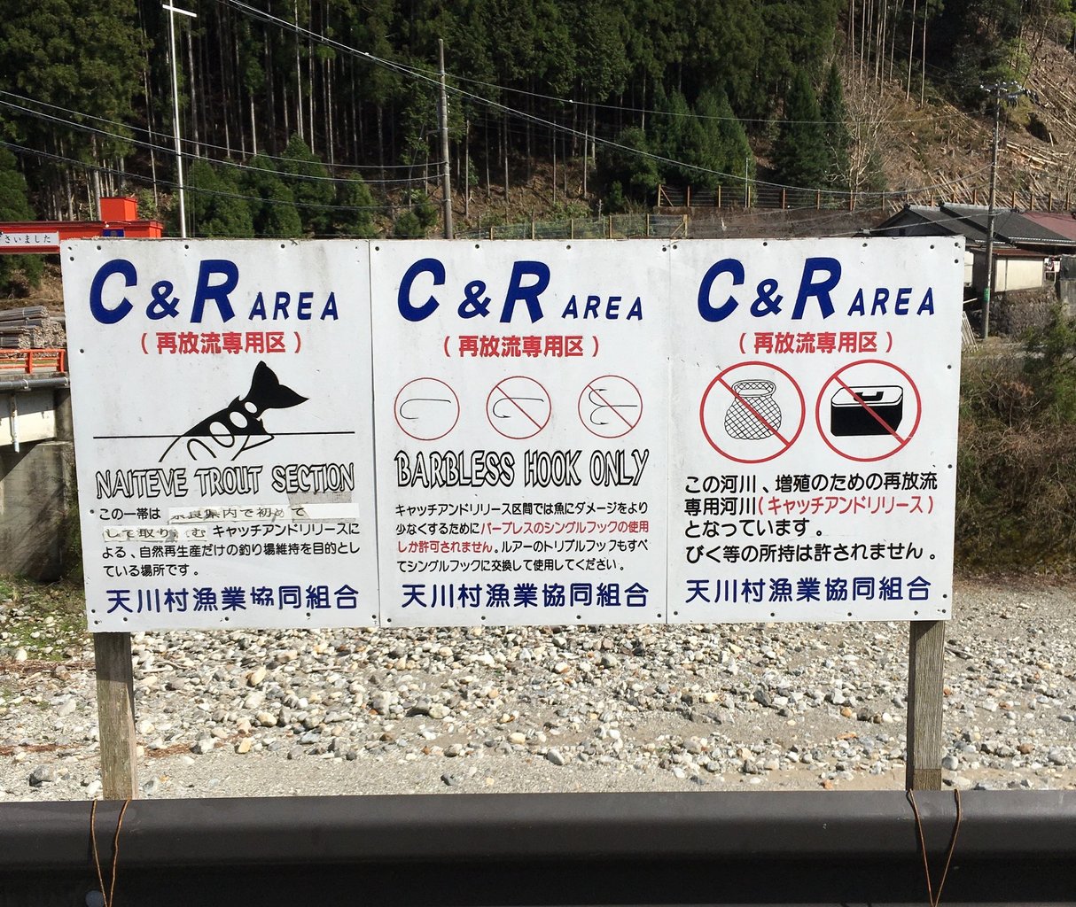 天川村漁業協同組合事務所にて受付 → 入漁券は午後4時までに事務所に返納する